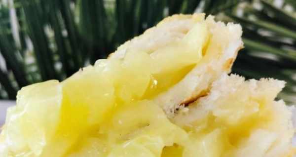 4.吐司上放入適量菠蘿餡,周邊抹上雞蛋液。