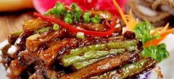 =程序=1。將洗凈的茄子撈出,切成較厚的塊,入鍋深炸,撈出;