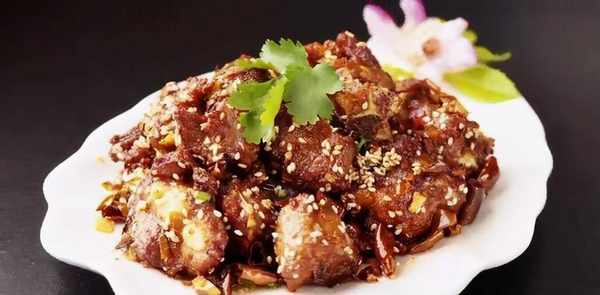 原料:豬骨500克、白芝麻8克、幹辣椒各少許、蔥花、蒜末、玉米粉20克、豆瓣醬15克、鹽3克、雞粉各15毫升酒。烹飪,4毫升辣椒油,食用