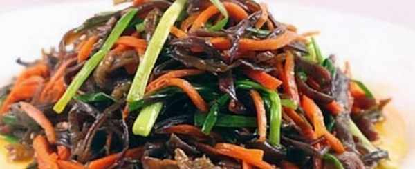 做法:1.黑蘑菇泡軟,胡蘿卜切絲,蔥切絲;