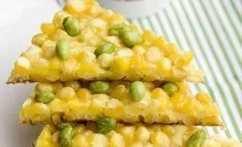 材料:粘玉米3個,幹面粉50克,雞蛋1個,白糖20克,毛豆30克,油。