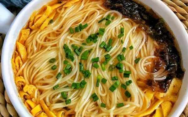 3.水燒開,加入幹面煮至熟,然後將面條的湯倒入碗中攪拌至順滑,加入面條,撒上蔥花即可食用。