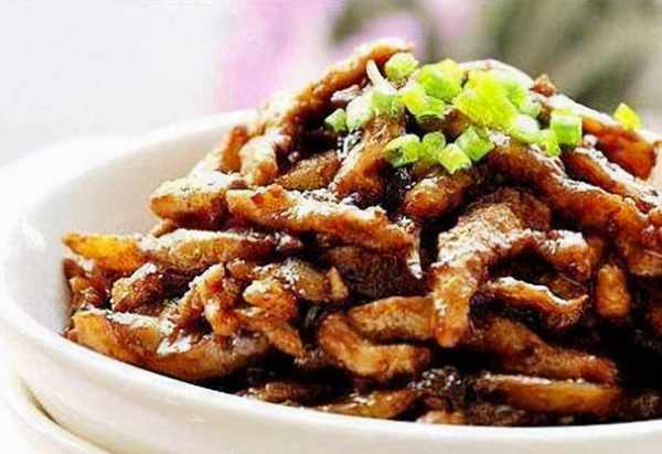 1、裡脊先切片,再切絲,加料酒1勺,蒸魚醬油1勺,生粉1勺,食用油1勺,鹽少許,和肉絲拌勻,醃約10分鐘;