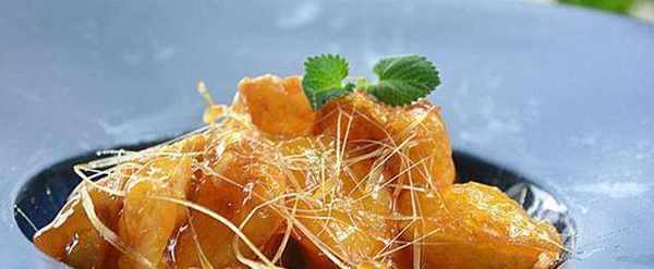 3、另取一鍋,加入少許水和糖燒開。4.將土豆塊放入另一個鍋中二次煎制(註意火候調節)