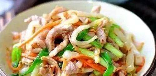 8、油燒熱至70%~80%,放入肉片,稍炒片刻迅速撈出。這一步應該使肉片變脆。