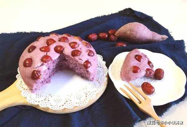 材料紫薯200克,高筋面粉450克,細砂糖60克,鹽3克,水80克,酵母3克,紅棗適量,食用油適量