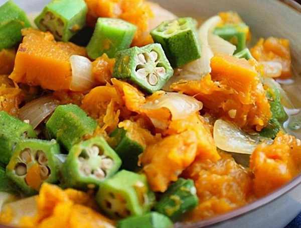 烤秋葵配洋蔥和南瓜