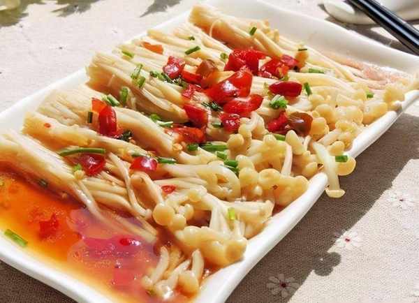 9.把蠔汁淋在金針菇上面便可