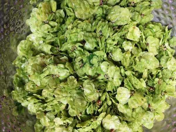 1、同樣的方法,將榆錢清洗幹凈,在瀝水盆中,將水分盡可能瀝出去。