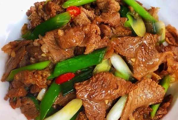 1、牛肉洗凈切片,大蔥切段,薑、蒜切末。