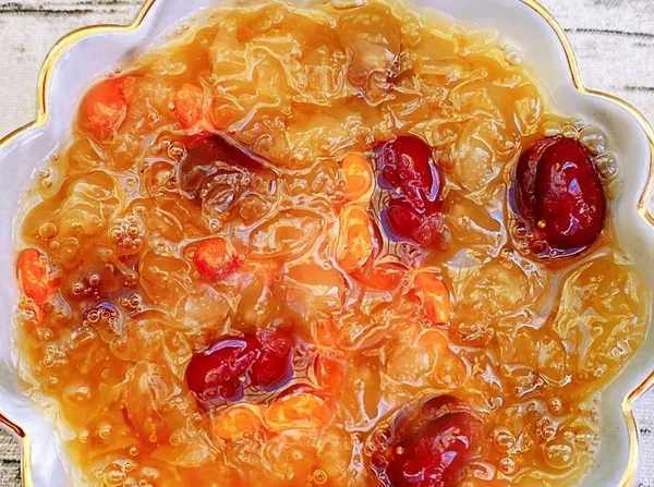 3、開蓋加入大棗,再小火煮1小時最後放入冰糖即可。