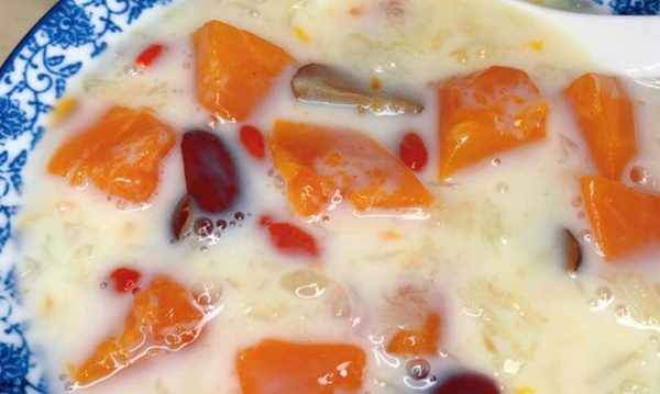 牛奶、銀耳、木瓜、紅棗、枸杞、冰糖