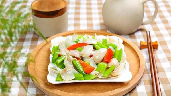 百合、西芹、胡蘿卜、大蒜、生抽、蠔油、鹽、雞精