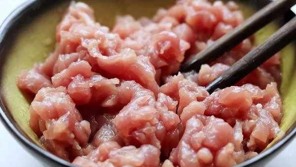 2、茄子不用削皮,豐富口感。切成長條條,加入少許食鹽,醃制10分鐘,等待茄子出水。把豬肉剁成肉沫,加入生抽、料酒,抓勻醃制20分鐘去除肉腥味。