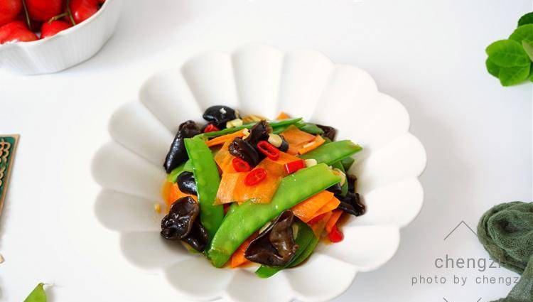 1、荷蘭豆清洗幹凈,再將兩頭和筋絡都撕掉。