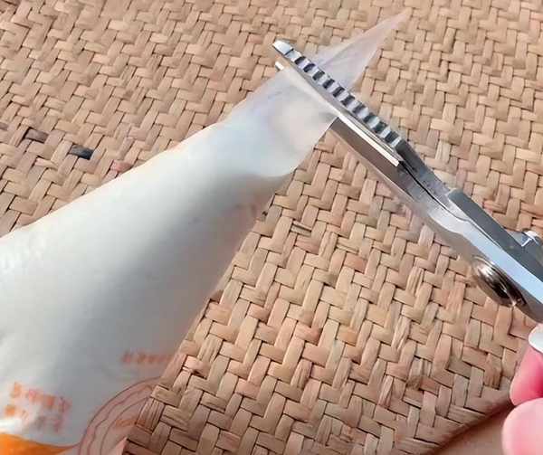 醒發好面糊後往裡放入食鹽調味,攪拌均勻後再裝到裱花袋中,剪去一角,要是沒有給它裝到保鮮袋中,擠到一角,就跟裱花袋是一樣的瞭。