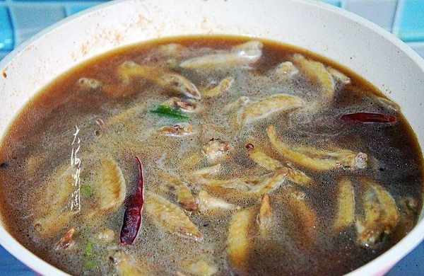 加入適量的水,沒過雞翅尖就好,不要加太多,雞翅尖很容易煮熟,加入適量的白糖或者冰糖都可以,大火燒開,小火慢燉至雞翅尖熟。