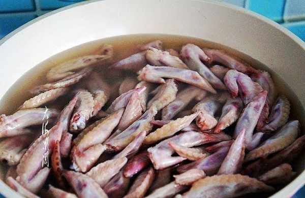 買回來的雞翅尖,打開包裝,清洗幹凈,冷水浸泡1小時左右,泡危險水。