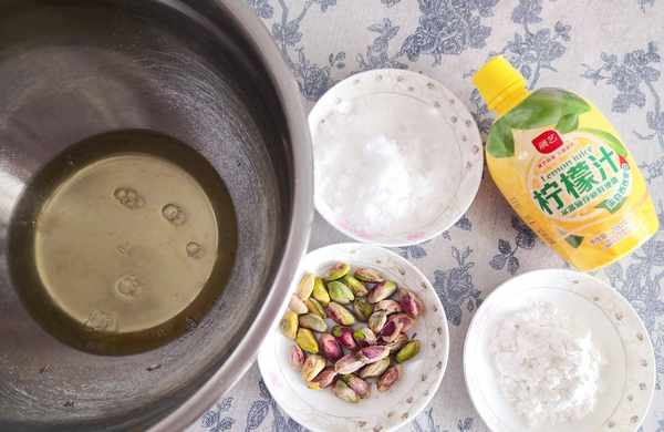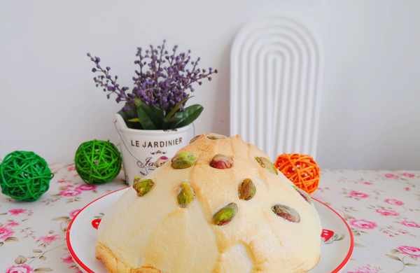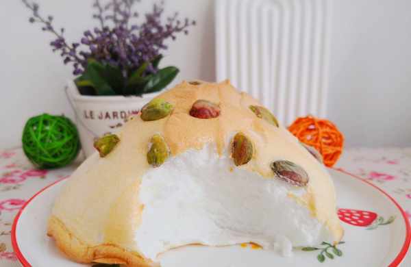 食材:蛋白3個,糖 25克,檸檬汁5克,玉米淀粉10克,開心果適量