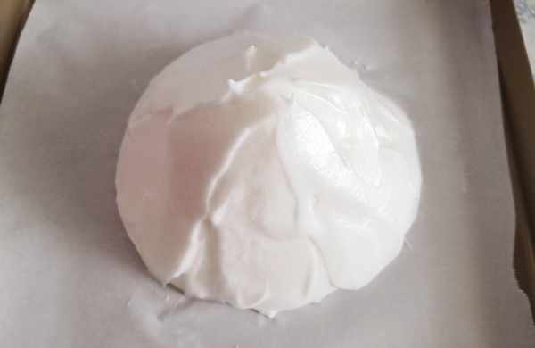 4. 烤盤裡鋪一張油紙,把蛋白糊倒入油紙上,再整一下形狀,