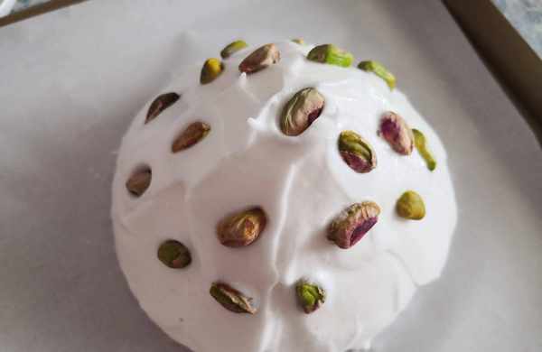 5. 再把開心果裝飾在蛋白糊上,
