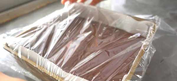 把紅豆沙倒進模具中去,蓋上保鮮膜,冷藏3個小時以上。