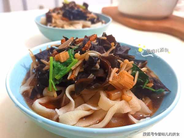 打鹵面做法:材料:面粉,鹽,金針菇,肉絲,黑木耳,蔥,薑,生抽1勺,花生油少許,香菜末。