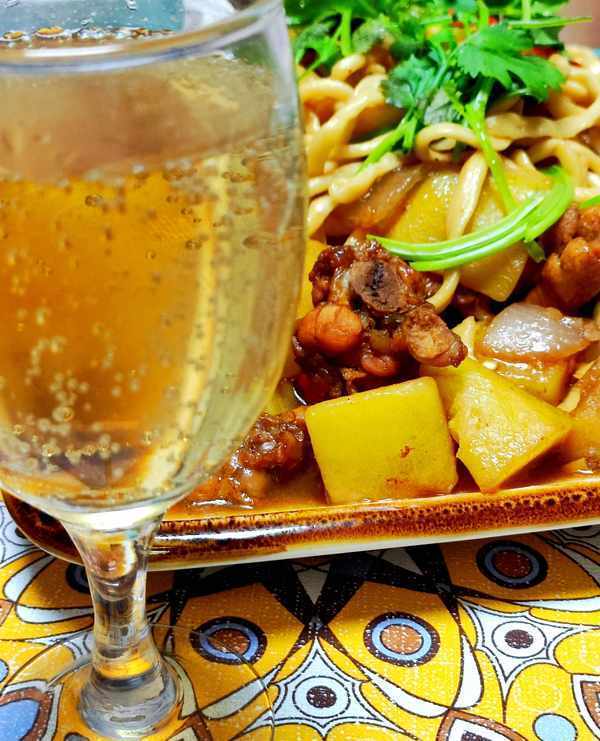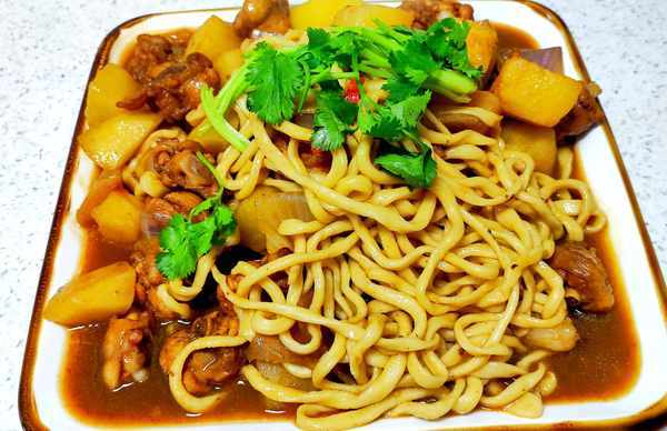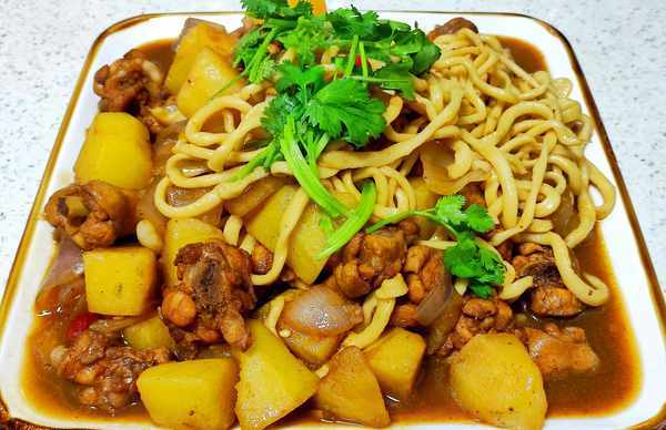 大盤雞拌面,最喜歡吃的卻是土豆,融合瞭雞肉與大骨湯的香味