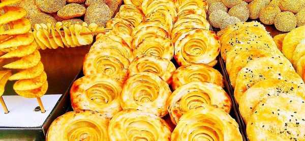 吃油旋,喝甜沫,濟南油旋和“甜沫”真是一對兒早餐好搭檔,濟南街頭名小吃,外皮酥脆,蔥香透鼻,因為形似螺旋,油潤金黃,得名油旋。