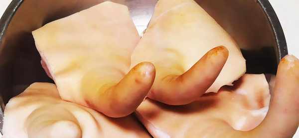 豬尾巴,即豬的尾巴,也稱皮打皮、節節香,比喻人生仕途或財運節節攀升。豬尾巴由皮質和骨節組成,皮多膠質重,所以用來打凍是極好的。小時候大人告訴我說要吃豬尾巴,我都會害怕,長大之後吃瞭才知道,這玩意是真香真好吃。豬尾巴的確是一道很好的菜,如果血脂含量比較高的中老年人還是盡量少吃,因為豬尾巴含膽固醇真的非常高,吃瞭對身體也不好。如果你不接受油膩的食物,那還是不要輕易嘗試,可能會覺得有些膩。話不多說哦,我已經將豬尾巴凍的做法整理出來瞭,大傢可以參考,在傢也試試哦~