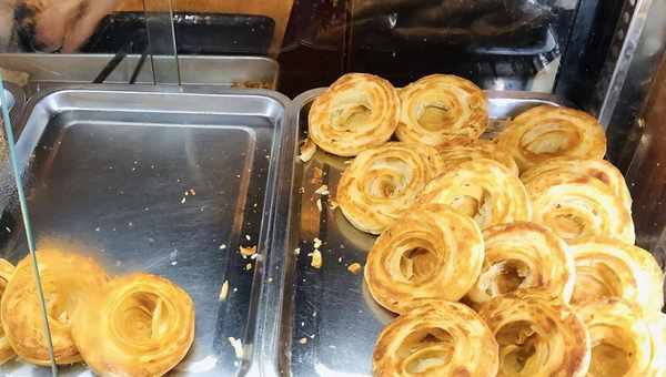 很多人都懷疑這是不是蔥油餅的姐妹!但油旋的口感更豐富多彩,有肉松、椒鹽、黑芝麻、花生酥等等!這個氣質貫穿瞭多少濟南人的童年!