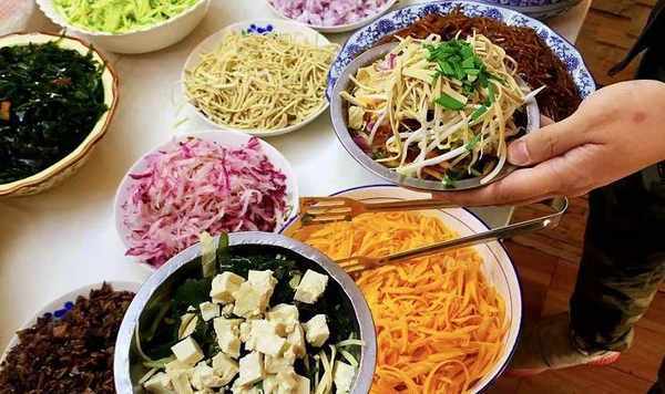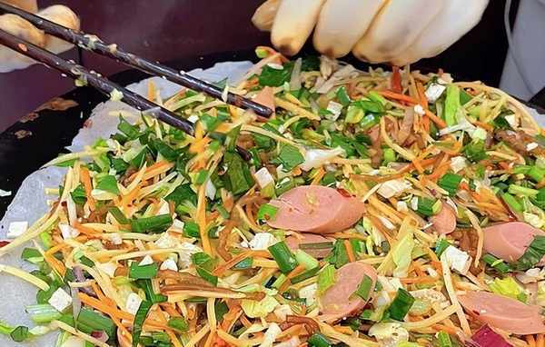 份量大到驚人的棗莊菜煎餅,本地人每天都要排隊買它。有胡蘿卜絲、土豆絲、豆芽、豆腐、青菜等等配菜多到你無法想象!可是根據個人需要添加配菜。