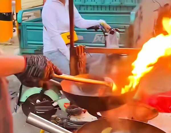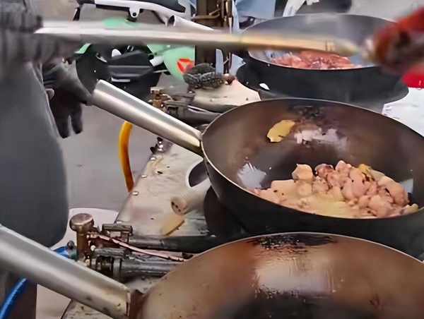 滕州有一個路邊小攤,開在步行街附近的一個小巷子裡,老板是一個年輕人,他的穿著很有特色,穿的古代的褡褳,天氣熱這樣的衣服散熱快,老板一個人同時操控三口鍋,都忙不過來,生意太好瞭。