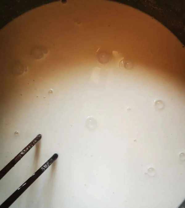 5、等到熬煮到鍋內的面糊變成半時尚狀時,就可以熄火瞭。