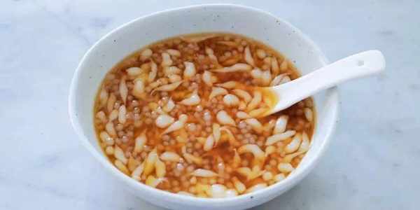 7、再準備100克紅糖和200克熱水倒入碗內攪拌均勻(紅糖和熱水的比例是1:2),用碗盛出適量的涼蝦,再把紅糖水倒入涼蝦中,攪拌一下就可以食用瞭。