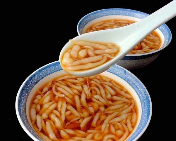 涼蝦是原產於湖北宜昌的十分常見的特色的一種小吃,滑糯清爽,柔軟清甜。它用大米制漿煮熟,用漏勺漏入涼水盆中而成。因頭大尾細形似蝦,故此得名。涼蝦制成後,再放置紅糖水或酸梅湯,是人們消暑的一道甜品。