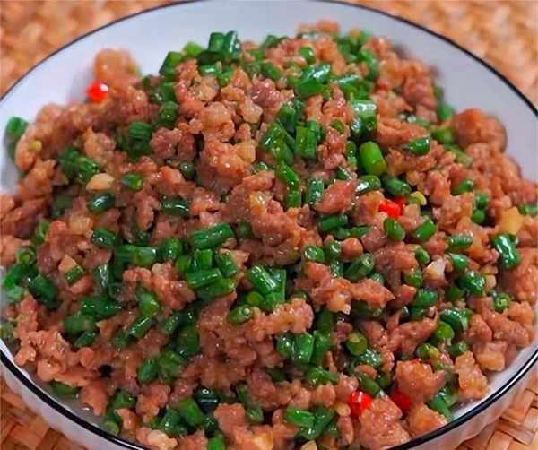 步驟四:再次起鍋燒油,下入蒜末、蔥花、小米辣碎,炒出香味,倒入豆角丁、肉末,攪拌均勻,再加適量的鹽調味,最後加一點水淀粉,攪拌均勻即可。這道菜真是太下飯瞭,拌米飯,我可以吃兩碗飯。