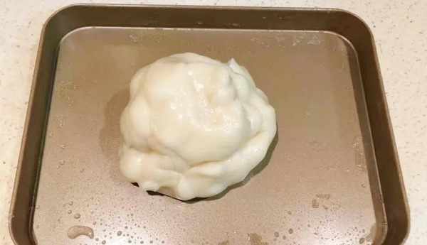 (4)下面準備糕點皮,120克糯米粉,50克玉米淀粉,20克玉米油,20克白糖,倒入170克水攪拌混合,上鍋蒸半個小時,裡面沒有白心就熟透瞭