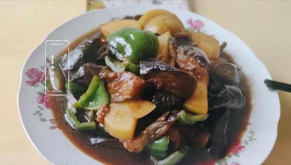 主要食材:茄子4個,土豆2個,青椒2個。