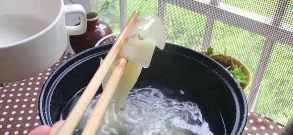 這時下筷子攪拌已經來不及瞭,因為水溫過高,餃子皮下下去之後,外層的就已經凝固瞭,裡面是一直攪不開的