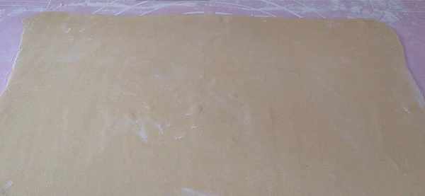 15.再用搟面杖把它搟薄一點,稍微薄一點就可以瞭。全部做好,松弛15分鐘。