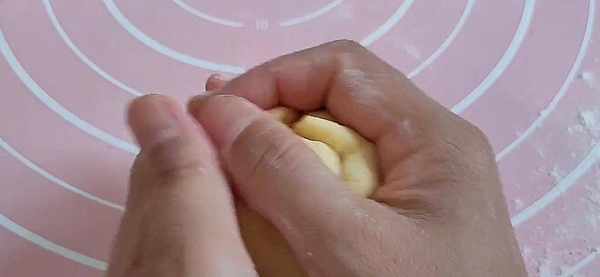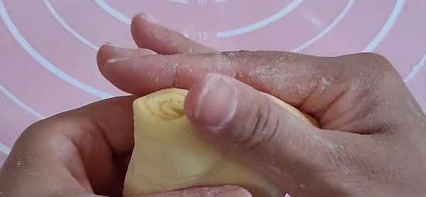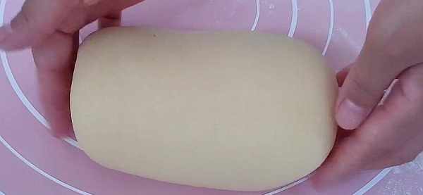 7.把它移到案板上揉搓排氣,揉到原來的大小。