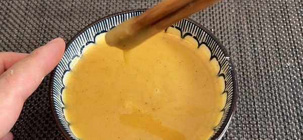 5.發酵時間做個油酥。碗中加入兩大勺面粉,然後根據個人口味調入鹽跟五香粉,最後淋入滾燙的熱油,攪拌均勻即可。