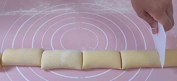 10.接著把它從一頭卷起來,卷嚴實一點。然後分成六等份。