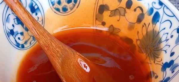 15.調個蜜汁。2勺生抽,半勺蠔油,適量番茄醬,少許蜂蜜倒入碗中。攪拌均勻備用。