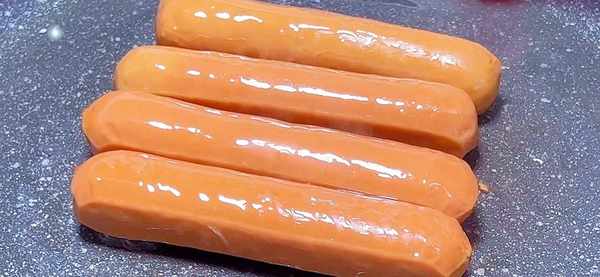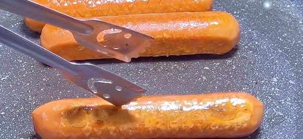 1.熱狗一定要熟 ,煎不熟的朋友滋點水進去燜煮或者用烤箱直接烤熟。