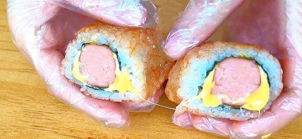 600克大米,適量烤腸 ,壽司專用烤腸,適量芝士片,適量蜂蜜,少許香油,