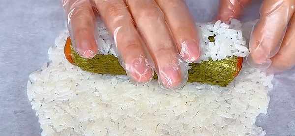 14.卷好再稍微調整一下,露出的部分用大米填上。最後按壓嚴實一點。