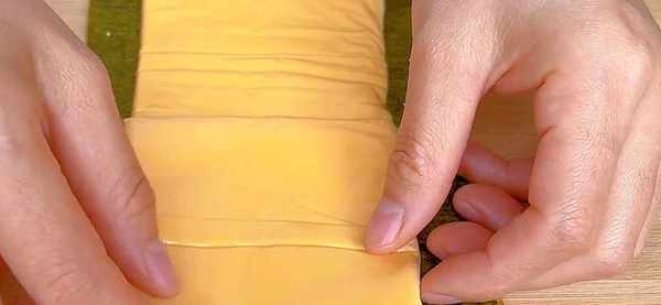 12.接著準備一張油紙,沒有的就用保鮮膜。把它按扁按成長條狀。