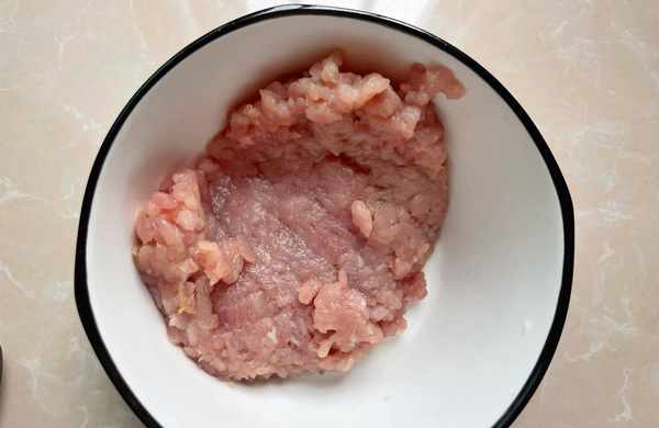 3.取一小塊豬肉,也切成肉末。